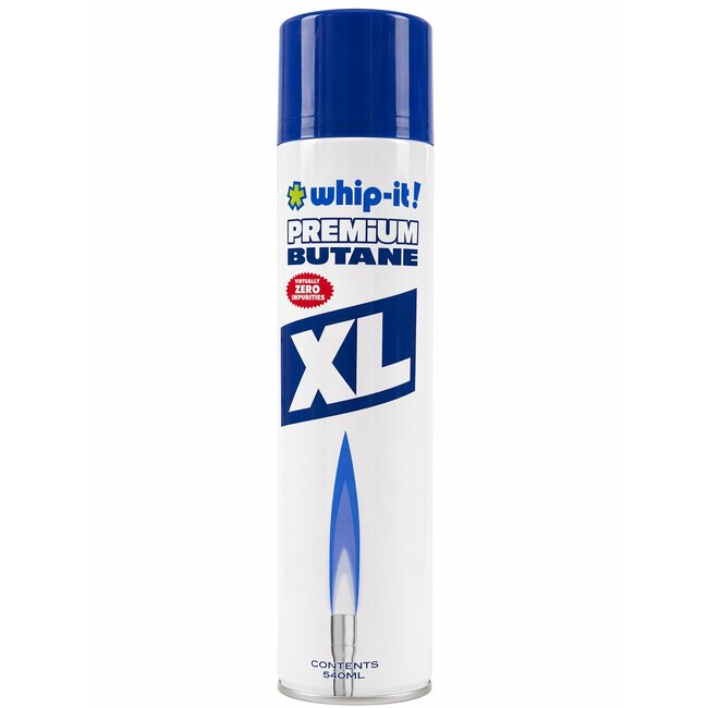 Upgrade your refilling experience with the WHIP-IT! Premium Butane 540ML (XL)—a high-performance, ultra-refined butane designed for reliability, cleanliness, and efficiency. Engineered with virtually zero impurities, this premium-grade butane ensures a smooth, consistent burn, making it ideal for torches, lighters, and various refillable butane-powered devices.