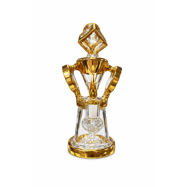 Step up your glass game with the bold and artistic 10” JUICY J “I See Your Cube and I Raise You a Circle” Bong (JJ275). This premium water pipe features a unique geometric design combining cube and circular elements, finished in a stunning metallic gold tone that instantly stands out in any collection.